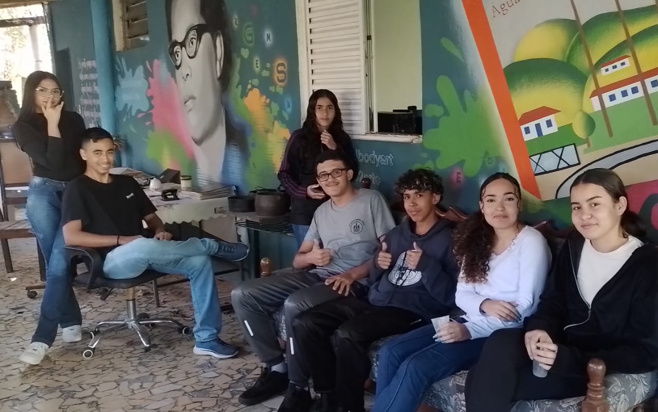 Desta vez, em um belo dia ensolarado de junho, dia 23, veio ao instituto Ruth Guimarães a escola Regina Pompéia Pinto representada pelos alunos do 8º e 9º anos do Ensino Fundamental e da 1ª e 2ª séries do Ensino Médio. É uma escola pública que está oferecendo um ensino de qualidade, posto que dá oportunidade para seus alunos conhecerem a literatura feita pelos escritores da cidade. São alunos leitores! Saíram do quintal da Ruth com alguns livros para o clube de leitura da escola os alunos Maria Gabrielli, Amanda, Yasmin e Juliana. Alunos curiosos, explorando o lugar, observando e comentando, com críticas interessantes. Parabéns aos professores e à direção, voltem sempre!