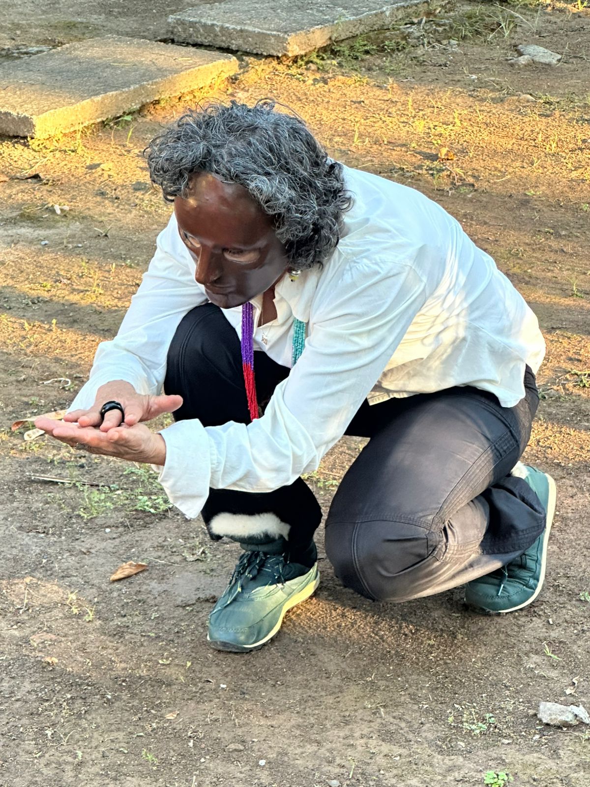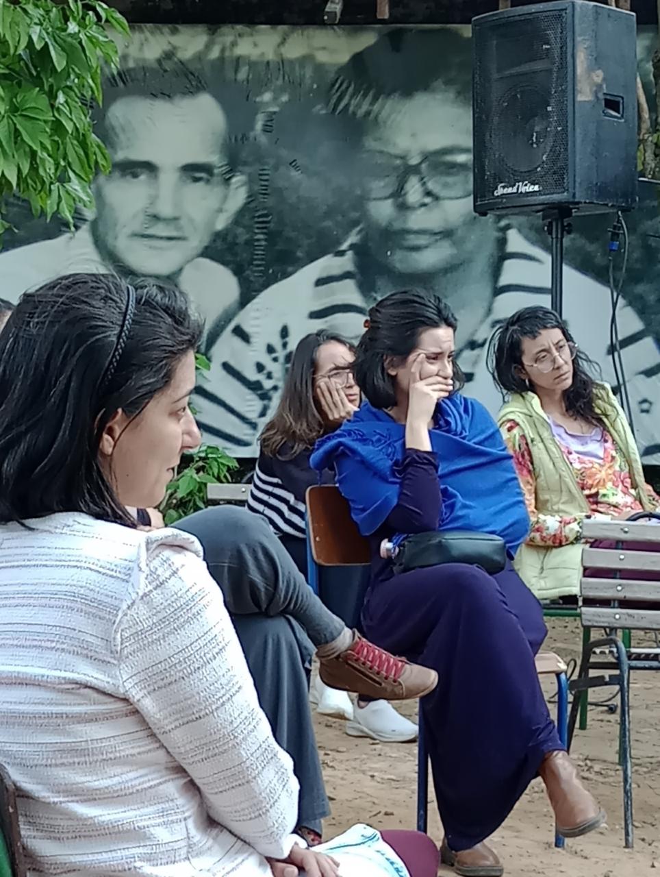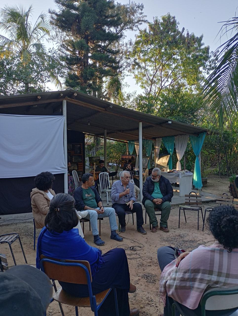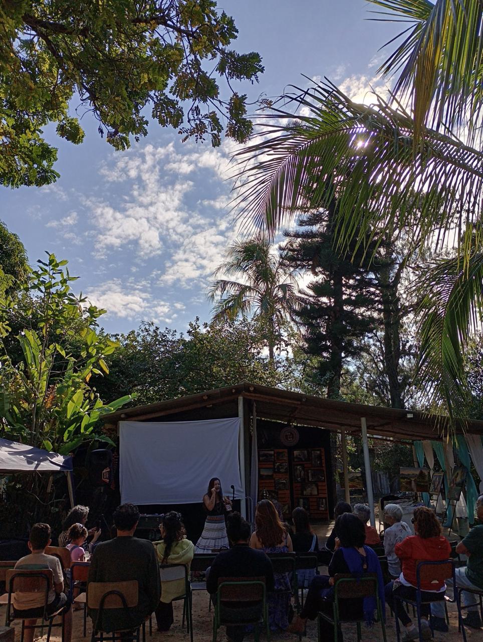 O tema proposto para Júnia Botelho, representante do Instituto Ruth Guimarães, foi sobre a ancestralidade, ou mais precisamente: uma palestra sobre os saberes ancestrais, oralidade e produção de memória. As moderadoras foram a doutoranda Gabriela Botelho e a sra. Aparecida Donizete. Não por acaso, Gabriela e Júnia são parentas, a prima Gabriela, neta de primo, distante no tempo, mas de uma proximidade trazida pelos ancestrais, de uma voz que escutamos e não sabemos de onde vem. Aparecida fez perguntas muito pertinentes. Nem sempre temos respostas para todas as questões, mas nem por isso elas devem deixar de ser colocadas. A dor é ancestral? Não sei, mas certamente a felicidade é. A felicidade de ter comigo, a meu lado, como um apoio, Gabriela, que nem era Botelho, nasceu Ferreira e foi mudando seu nome ao longo do tempo. Por quê? Porque era assim que tinha de ser. E porque assim foi. Doemos, sim, choramos, sim, e isso não deve ser esquecido. Mas a dor ancestral não deve doer somente para nos fazer chorar, cantemos, dancemos, porque temos esse banzo, esse profundo sentimento de melancolia e saudade da terra natal, da família e da liberdade, que faz parte de nossa história e de nossa pele, sentimos, mas não podemos morrer por ele – devemos viver por ele e fazer disso um passo para ir além e fazer viver nossa história de outra maneira.